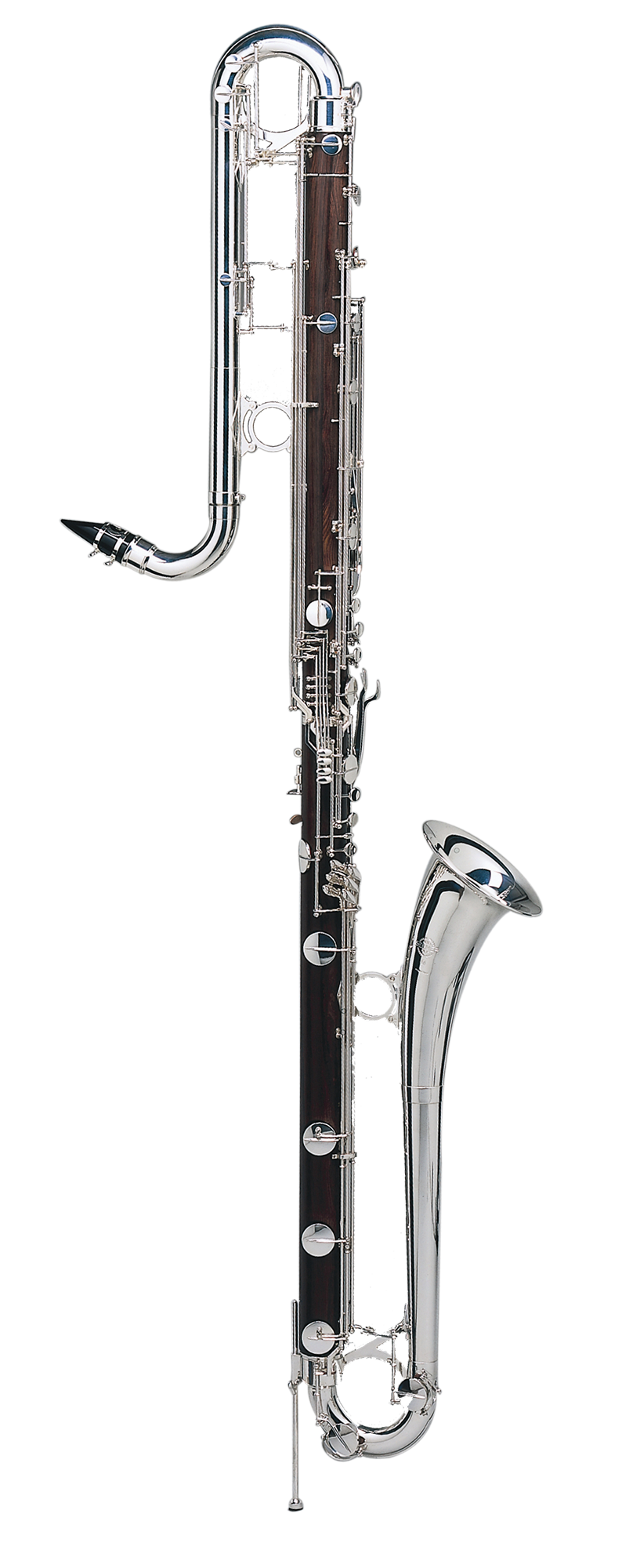 Key of Bb Bore: 33.9mm Pitch: 442 Range to low C Silver plated nickel silver neck, adjustable for tuning Rosewood body Silver plated brass bell Adjustable stand Silver plated nickel silver has more texture than nickel, which makes it easier to finger fast technique Leather pads with metal resonators get a perfect seal, and helps players get a warmer, more resonant tone Stainless steel needle springs Mouthpiece: Standard C* B-flat Contra Bass clarinet mouthpiece Case: Bb Contra Bass light case