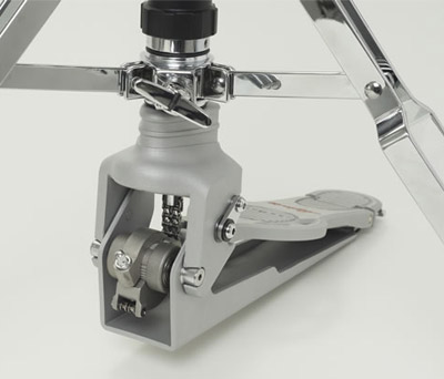A unique, revolving approach allowing the player to position the bottom hat cymbal to any angle and lock it in place.
